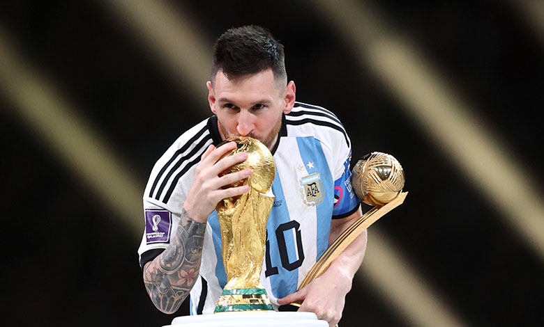 লিওনেল মেসির বিশ্বকাপ ট্রফিকে চুম্বন, ছবি – সৌজন্যে – ট্যুইটার – @FIFAWorldCup