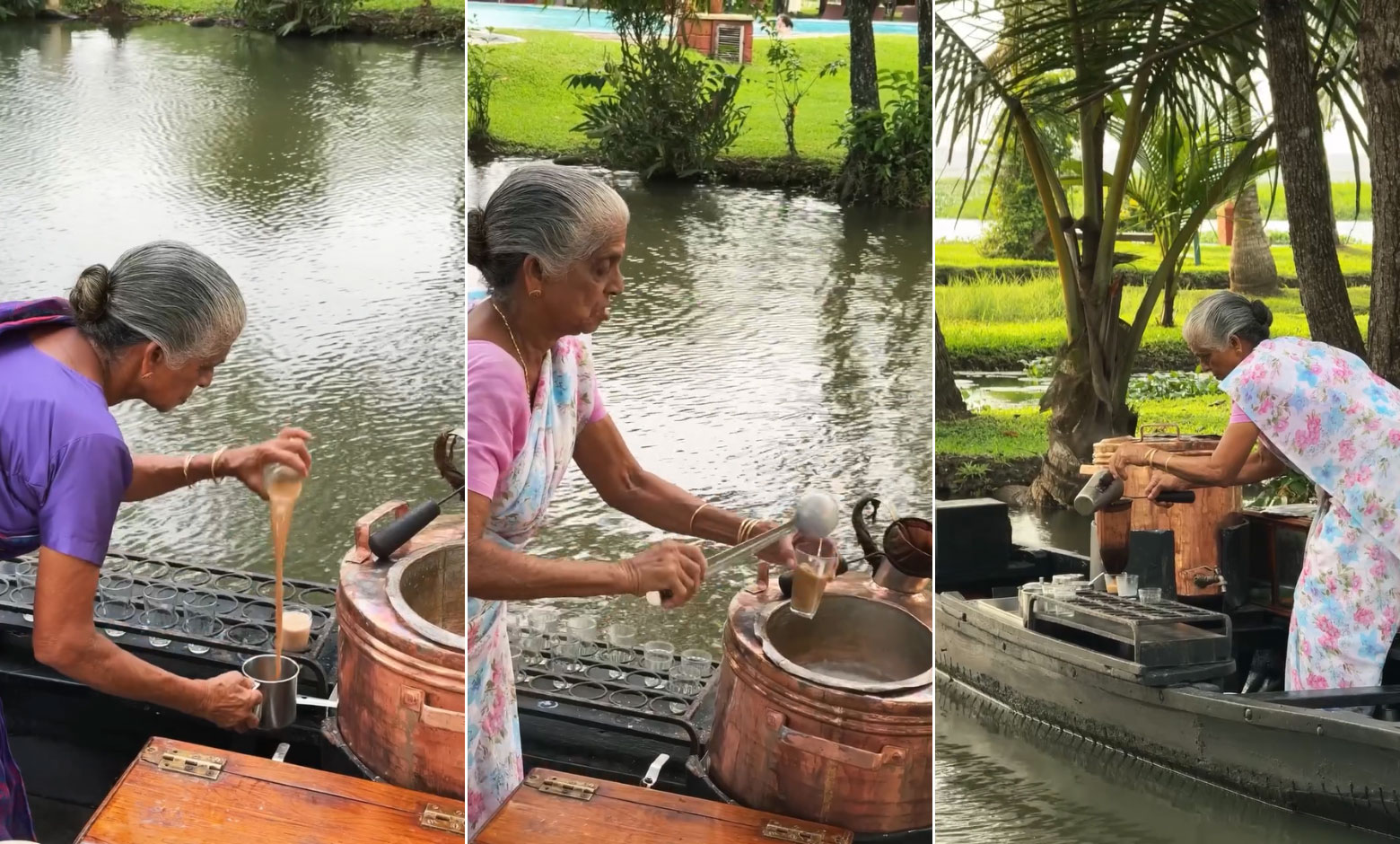 কেরালার বিখ্যাত ব্যাকওয়াটার। সেই ব্যাকওয়াটারের ধারে কুমারাকম কোকোনাট লেগুন। এখানেই বিকেল হলে দেখা মেলে চায়া চাচি-র। নৌকায় করে তাঁর বিখ্যাত মশালা চা নিয়ে হাজির হন জলপথে। নৌকা থেকে নামেন না। নৌকায় দাঁড়িয়েই চা এগিয়ে দেন পারে দাঁড়ানো ক্রেতার হাতে।
