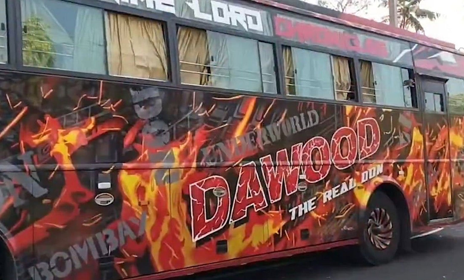 বাসটির গা জুড়ে গ্যাংস্টার দাউদ ইব্রাহিমের নামে স্লোগান লেখা ছিল। কোথাও লেখা ছিল গ্যাংস অফ মুম্বই, কোথাও লেখা ছিল রিয়েল ডন। যা দেখার পর প্রশাসনিক আধিকারিকরা মনে করছেন এগুলি দাউদের প্রশংসা করে লেখা হয়েছে।