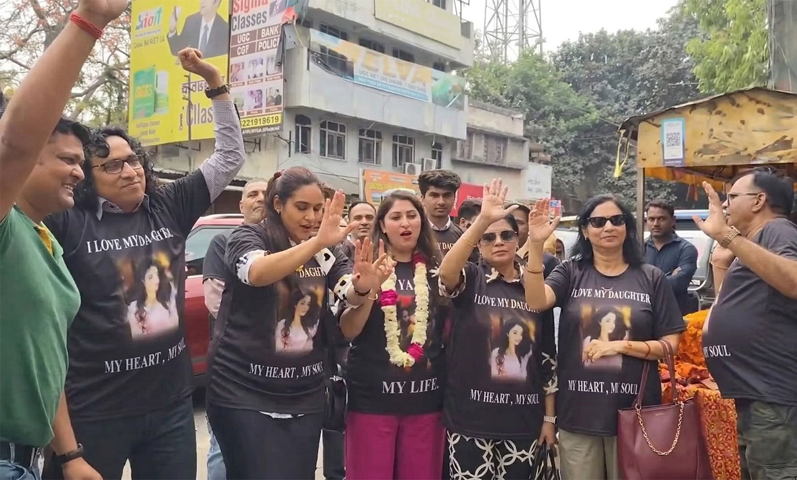 মেয়ের এই কঠিন সময়ে যে তাঁর বাবা তাঁর পাশে আছেন সেটা এভাবেই বুঝিয়ে দিলেন পিতা জ্ঞানেন্দ্র শর্মা। মেয়ের হাত ধরে তাঁকে উৎসবের মধ্যে দিয়ে বাড়ি ফিরিয়ে আনলেন।