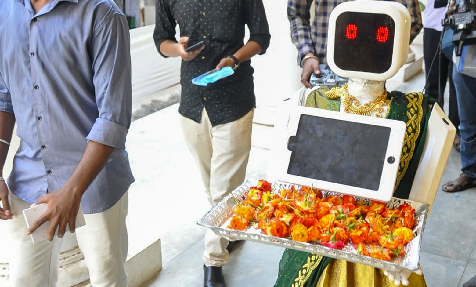 সেখানে বিধানসভা নির্বাচনে এবার একটি ভোটকেন্দ্রে ভোটারদের উষ্ণ অভ্যর্থনা জানাচ্ছে একটি রোবট। রোবটের পরনে রয়েছে শাড়ি। রোবটের হাতে রয়েছে একটি থালা। রোবটের চোখ লাল। সারাক্ষণ কিছু একটা খুঁজছে।